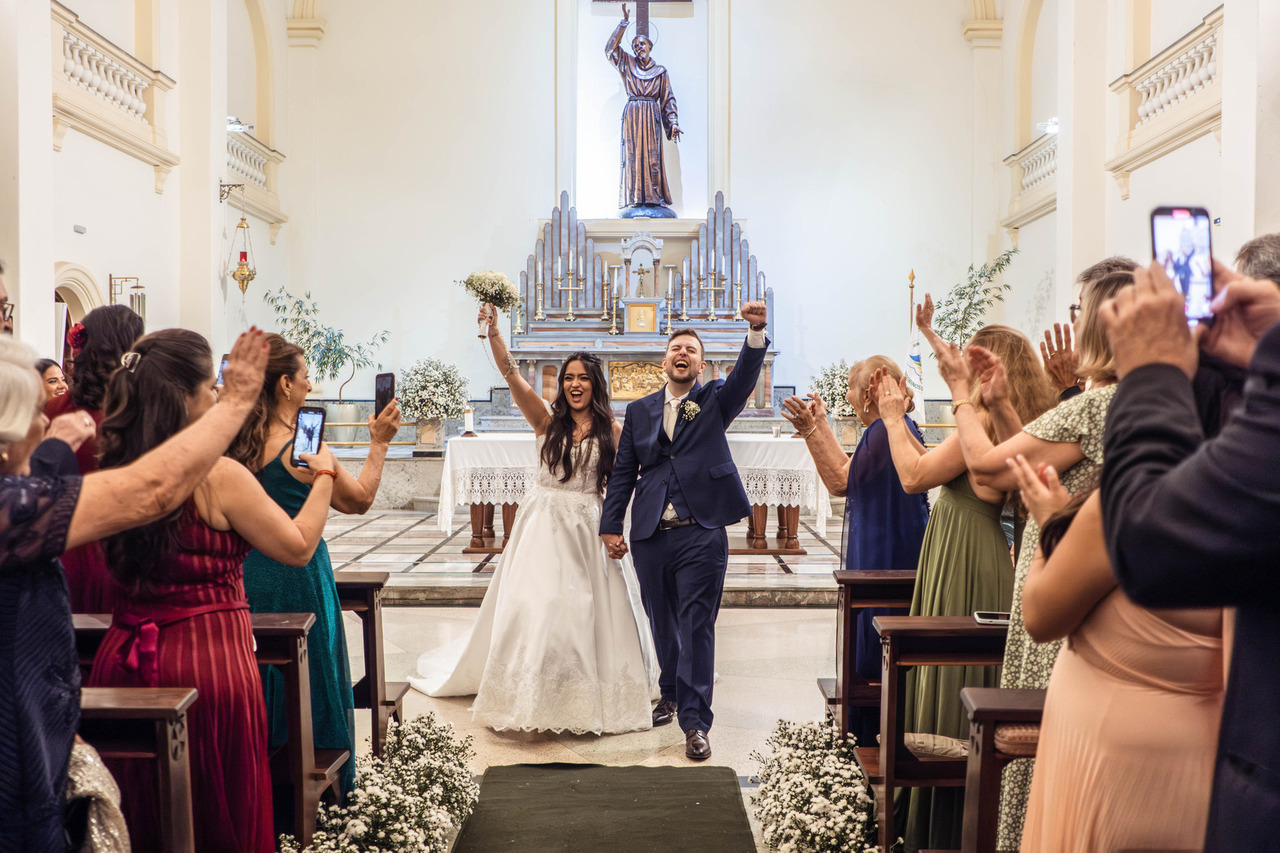 Os detalhes das mãos que abençoam, a entrada das alianças com o filhote de estimação, o beijo, a saída... o sonho se realizando!