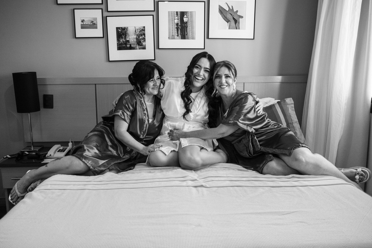Na sequencia acima temos a noiva admirando seu vestido, em um momento de descontração com a mãe e a sogra.